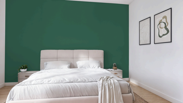 Racing Car is een donkere, ingetogen groen en de ondertoon is groenblauw. Deze verfkleur is perfect voor een speelkamer. Combineer met lichtgoud en diepbruin.