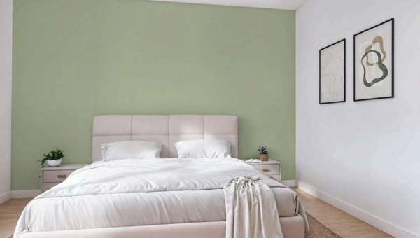 Dry Grass is een middentoon, grijs, weelderig groen en de ondertoon is organisch groen. Deze verfkleur is perfect voor een rustgevende slaapkamer. Combineer met pruim of diepbruin.