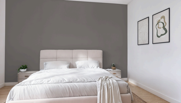 Gibraltar Gray is diep, warm moerbeigrijs en de ondertoon is koningsblauw. Deze kleur is perfect om een accentmuur te schilderen. Combineer met lichtere kleuren voor contrast.