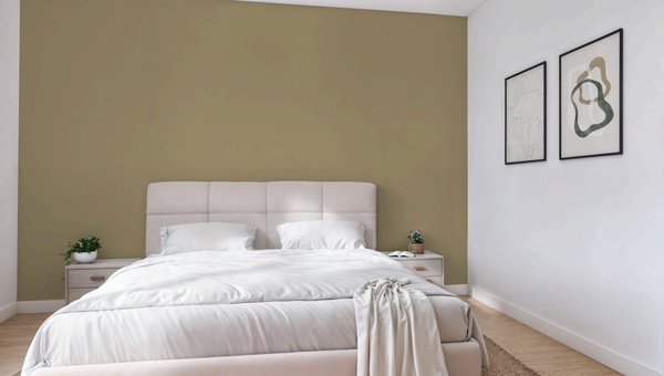 Hindu Lotus is diep, neutraal saliegroen en de ondertoon is avocado. Combineer met gele of lichtbruine nuance kleuren en werk af met witte accenten.