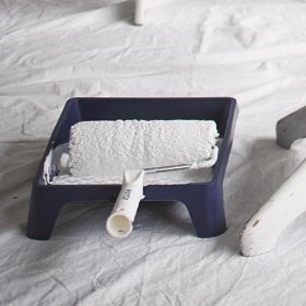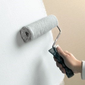 Glasvezelbehang heeft twee verflagen nodig. De eerste laag verdun je met 10% water. Giet wat Histor muurverf in het verfbakje en verf de afgeplakte randen met een borstel. Verdeel de muur dan in denkbeeldige banen. Verdeel deze banen weer in kleinere vlakken. Begin in het vlak bovenin de hoek. Doop de vachtroller in de verf en rol hem goed uit in het verfbakje. Zo verdeel je de verf gelijkmatig. Plaats de roller halverwege en verdeel de verf door naar boven en beneden te rollen. Maak zo in stroken het vlak vol. Op deze manier schilder je elke baan stapsgewijs. Laat vlakken en banen altijd iets overlappen. Kleurverschillen voorkom je door ‘nat in nat’ te schilderen. Je kunt de muur dus het beste in één keer af maken. Laat het behang minimaal 24 uur drogen voor je de volgende laag aanbrengt. De tweede verflaag hoef je niet te verdunnen.